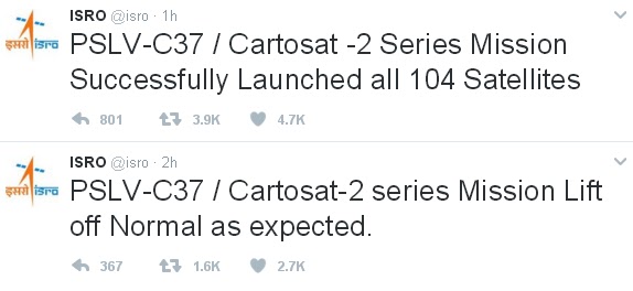 - ##chevron-right## 15 Feb - ISRO brings glory to the nation yet again! Success built on the foundations of indigenous technology never tasted sweeter!