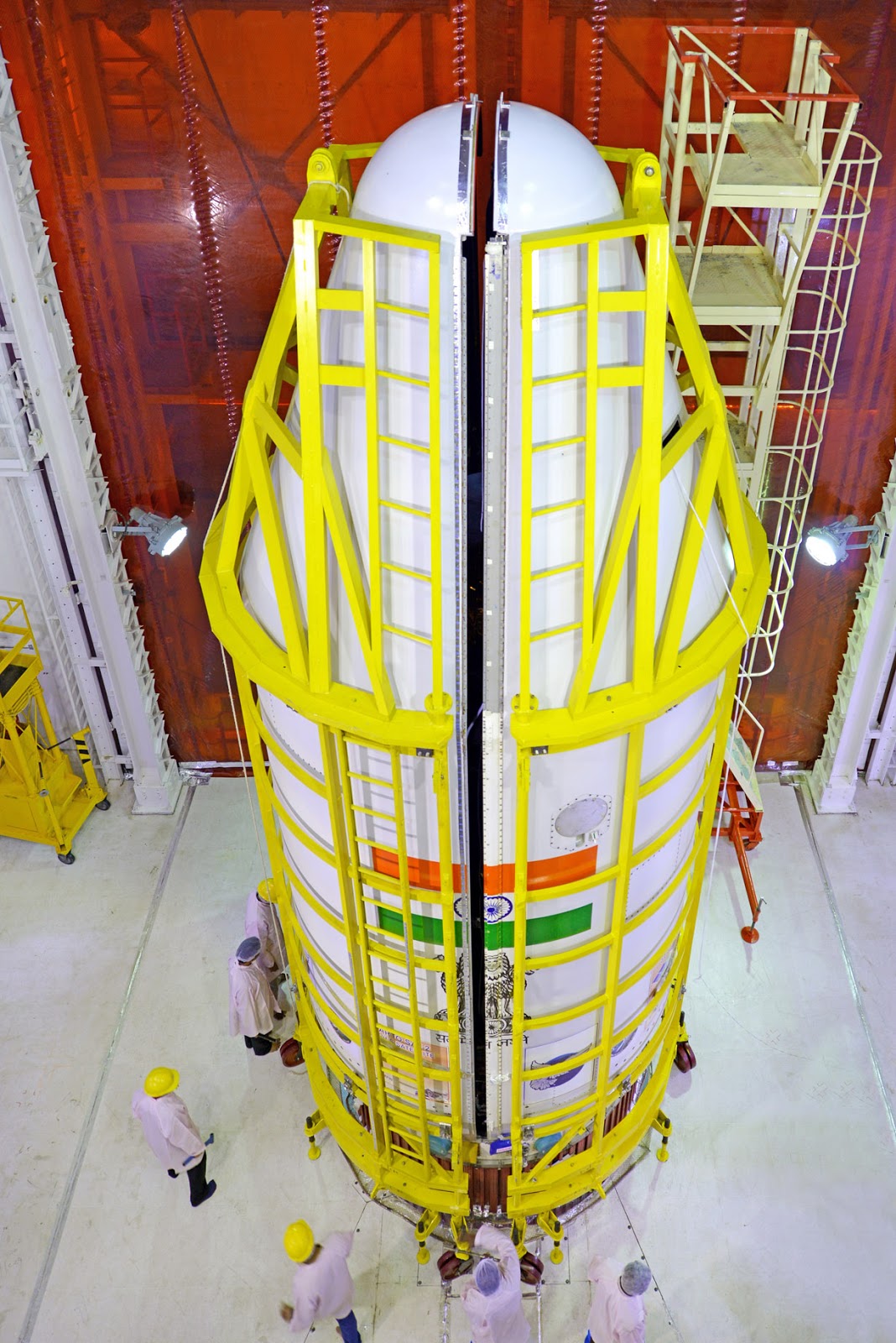 | PSLV's heat shield being closed with the 104 satellites inside - stay cool! |
